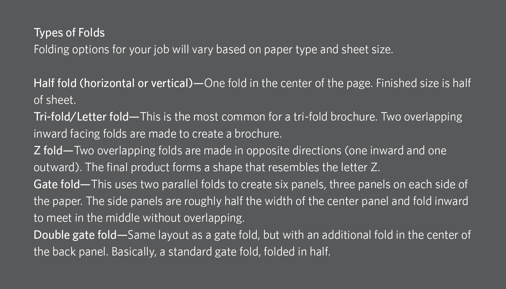 This will be your custom print job that involves submission of your own artwork and specifications. If graphic design is needed, please contact Lisa Miller at 436-3317 or lisa.miller@oneonta.edu.